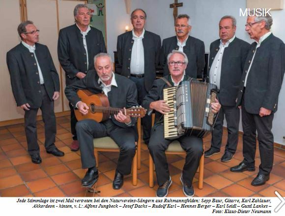 Das war nicht immer so „Ganz am Anfang waren wir eine gemischte Gesangsgruppe" - erinnert sich der musikalische Leiter des doppelten Quartetts Gustl Lankes (72). „Es sang, wer Spaß und Zeit, und wer Lust dazu hatte. Doch dann kam bei dem einen oder der anderen die Familienplanung, traten berufliche Anforderungen in den Vordergrund und die gemischte Gesangsgruppe löste sich auf". Übrig blieben ein paar Männer. Karl Zahlauer, der heutige erste Vorstand des Naturvereins und Gustl Lankes waren zwei davon. Über die Jahre hat es sich dann ergeben, dass daraus zunächst ein Quartett und später dann das Doppelquartett wurde. Ein Gründungsjahr der Truppe gibt es deshalb nicht. „Es lässt sich heute nur noch schwer nachvollziehen, wann wer dabei war, wer ausschied, wer wann neu dazu kam“ sagt Lankes.